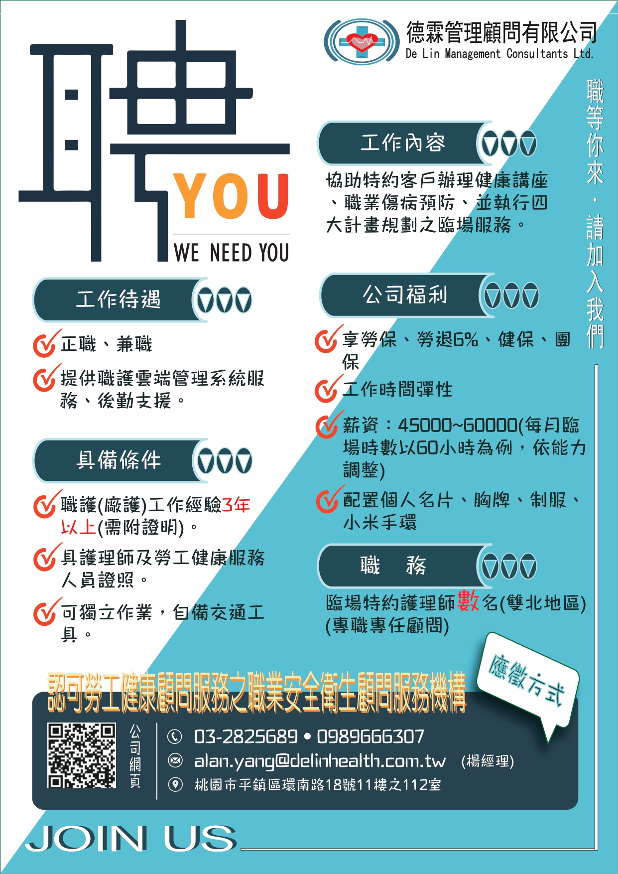 德霖管理顧問有限公司誠徵臨場特約護理師數名(雙北地區)